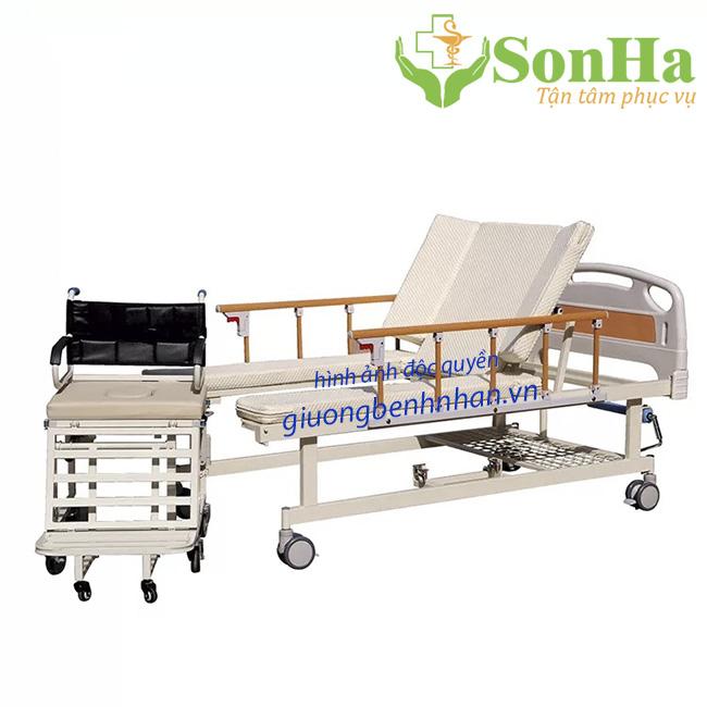 - Nói thêm về chức năng tách làm xe lăn của giường NKT-C-09 Thì đây là chức năng dành riêng cho một số bệnh nhân mà người chăm sóc muốn thuận tiện hơn cho công việc đi lại, muốn di chuyển bệnh nhân ra ngoài thì rất tiện lợi. Thao tách để tách làm xe lăn ra rất nhanh gọn do sự cải tiến về khâu vận hành được nâng cao.