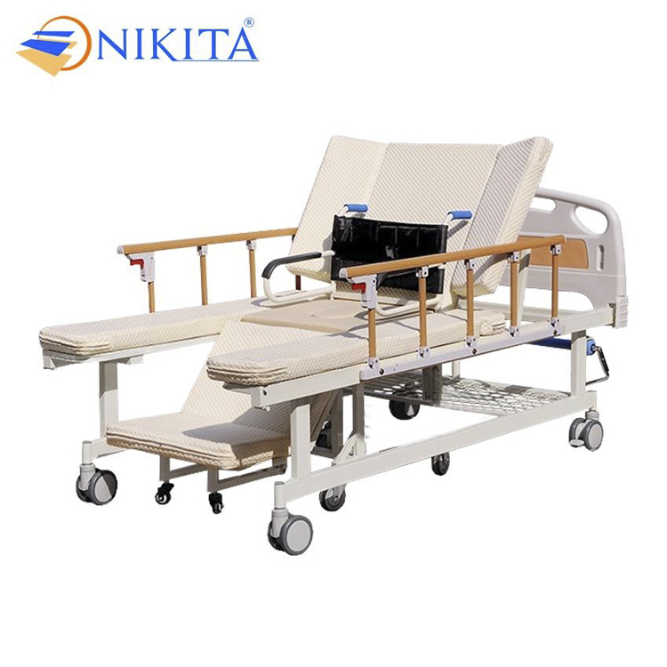 Giường bệnh đa năng tách làm xe lăn Nikita NKT-C09 là dòng giường bệnh đa năng đặc biệt đó là có thể tách ra làm một cái xe lăn để đẩy bệnh nhân ra ngoài đi dạo hoặc đẩy vào nhà tắm đi vệ sinh. Giường đa năng tách làm xe lăn NKT-C09 là dòng giường bệnh đa năng bao gồm nhiều chức năng như nâng đầu, nâng hạ chân, đi vệ sinh tại chỗ, nghiêng trái nghiêng phải, có thể gội đầu, cây truyền dịch..vvv