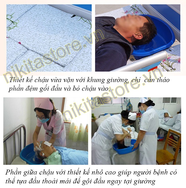 11- Chức năng vệ gội đầu tại giường : Giường bệnh DH-04 có khả năng gội đầu tại giường, đây là một chức năng rất tiện lợi, thuận tiện cho nhiều bệnh nhân già yếu, những người bị tai biến không có khả năng đi vệ sinh tại nhà vệ sinh.