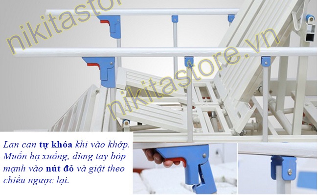 15- Lan can giường bệnh nhân NKT-SZF6 được làm bằng nhôm xe kẻ Inox 304 màu trắng rất thẫm mỹ, và có khả năng gấp gọn lại khi cần thiết, thao tác cũng rất nhẹ nhàng và nhanh nhẹn, rất thuận tiện hơn công tác chăm sóc.