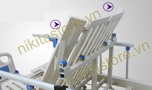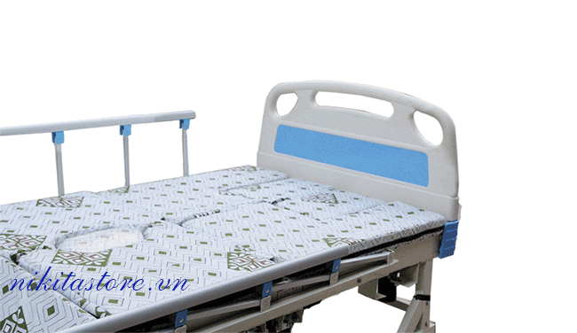 5-6 Chức năng nghiêng trái và nghiêng phải. Giường bệnh nhân NIKITA DH-03 có có khả năng nghiêng người qua trái và qua phải từ 0-60 độ, giúp thay đổi tư thế nằm của các bệnh nhân,để tránh gặp hiện tượng bị lở loét phần lưng ( triệu chứng bedsores). Đồng thời hỗ trợ cho người chăm sóc bệnh nhân trong việc thay đồ cho người bệnh.