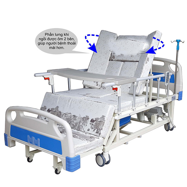 2-Chức năng bó sát lưng người khi nâng đầu: chức năng này mục đích là để tránh trường hợp lúc nâng đầu bệnh nhân bị nghiêng ngả sang 2 bên.