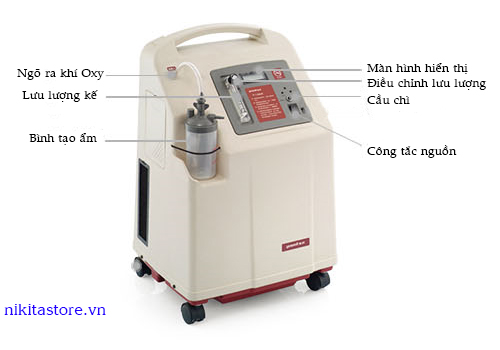 Máy 7F-5 ngoài bộ điều chỉnh lưu lượng gắn trực tiếp, máy có thêm một bộ điều khiển lưu lượng rời gắn liền với bình tạo ẩm rất thuận tiện cho thao tác điều chỉnh lưu lượng phù hợp với người bệnh.